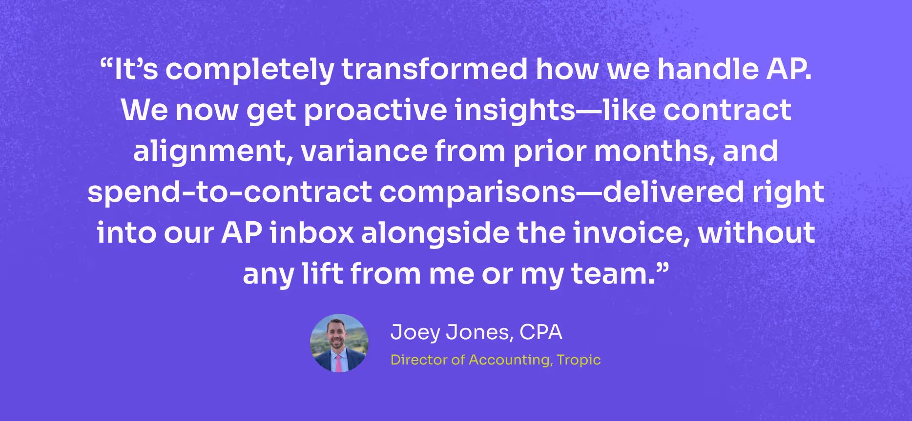 “We’re spending a ton of time manually validating invoices. Asking ourselves is this the right supplier? Are the terms accurate? Did someone approve this? All while trying to close the books on time.”