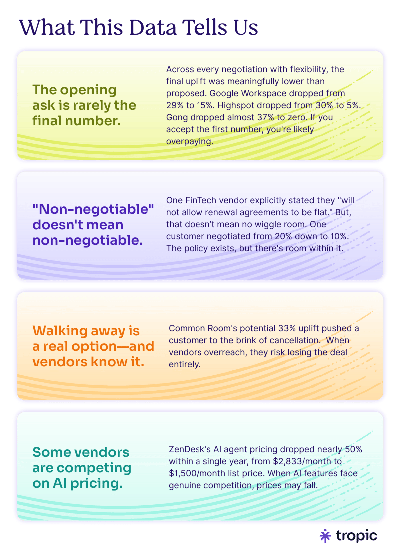 Based on a real-world dataset of AI-driven software renewals and expansions across Tropic customers, several key findings emerged: