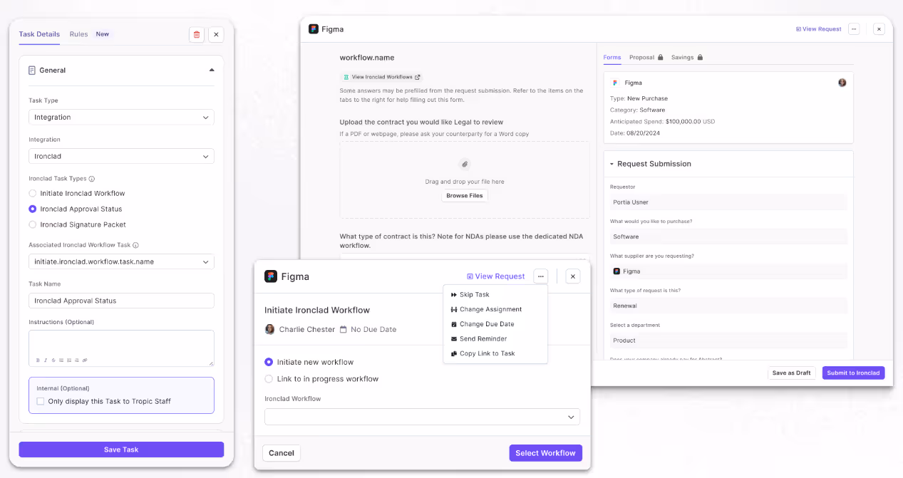 When someone fills out a request form in Tropic, that information now flows directly into the corresponding Ironclad form fields. Names, dates, contract values, and approvers, all transferred automatically. No more copy-paste. No more asking people to enter the same information twice.
