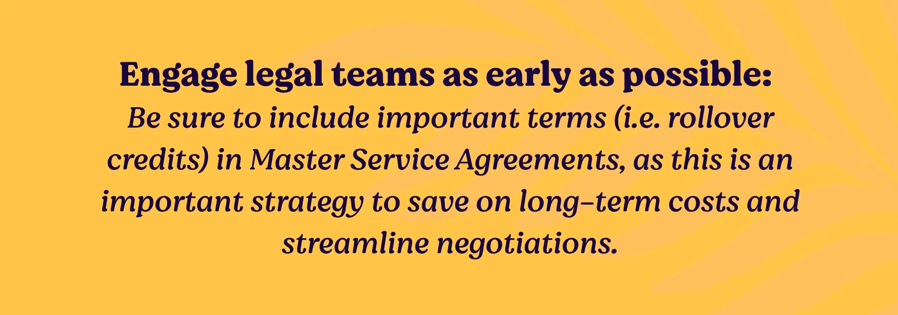 Here’s an example: Company XYZ downsized last year and only utilized 80 percent of its annual commitment. They can use that additional 20 percent as a rollover credit on a $100,000 deal, resulting in greater savings than a 15 percent discount (i.e. $20,000 savings versus $15,000 savings). While this may seem like a scenario that is “too good to be true,” software suppliers often view this as a strategy to secure a long-term partnership.