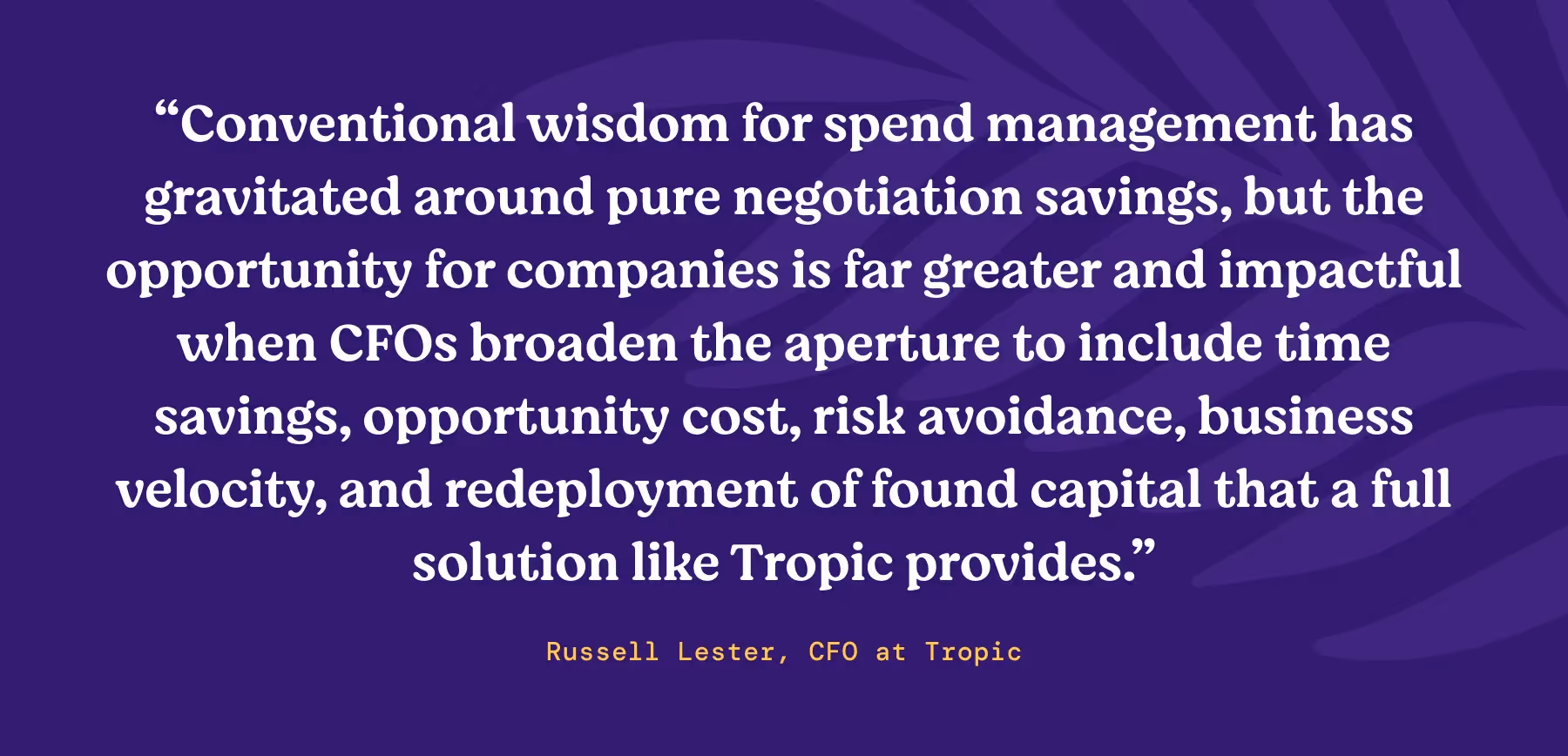 Throughout Tropic’s journey, we’ve had the privilege of working alongside 100s of innovative finance leaders as they look to unlock efficiency gains during a rapidly changing market – our next stage of growth doubles down on that. Russell’s vision that CFOs are strategic business partners and proactive agents of change aligns with how we want to continue to uplevel/impact the finance function and help them become the superheroes of their organizations.