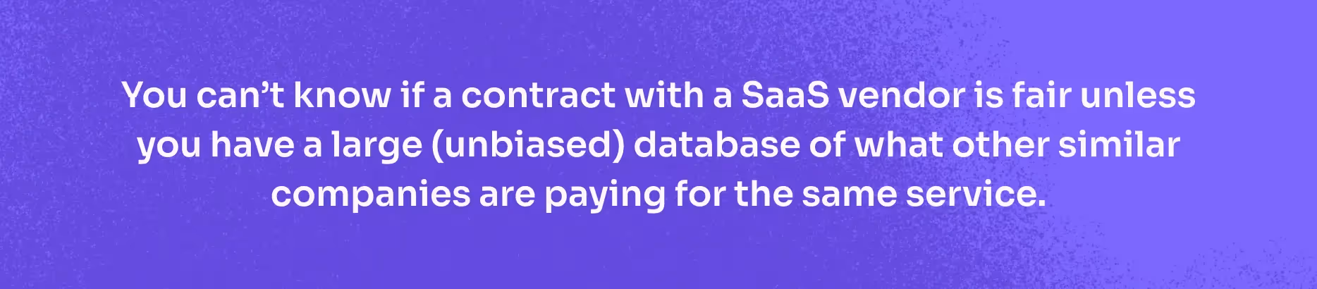 You can’t know if a contract with a SaaS vendor is fair unless you have a large (unbiased) database of what other similar companies are paying for the same service. You’d need to: