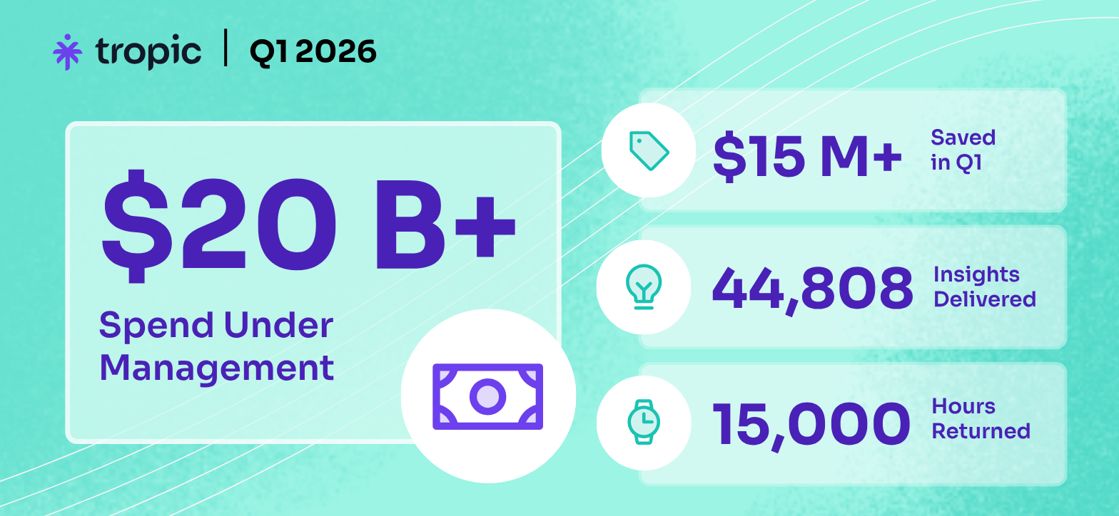 In Q1, Tropic surpassed $20 billion in spend under management, delivered more than $15 million in customer savings, and returned 44,808 hours to finance and procurement teams, the result of AI-surfaced opportunities powered by expert-led negotiations across the software and AI stack.