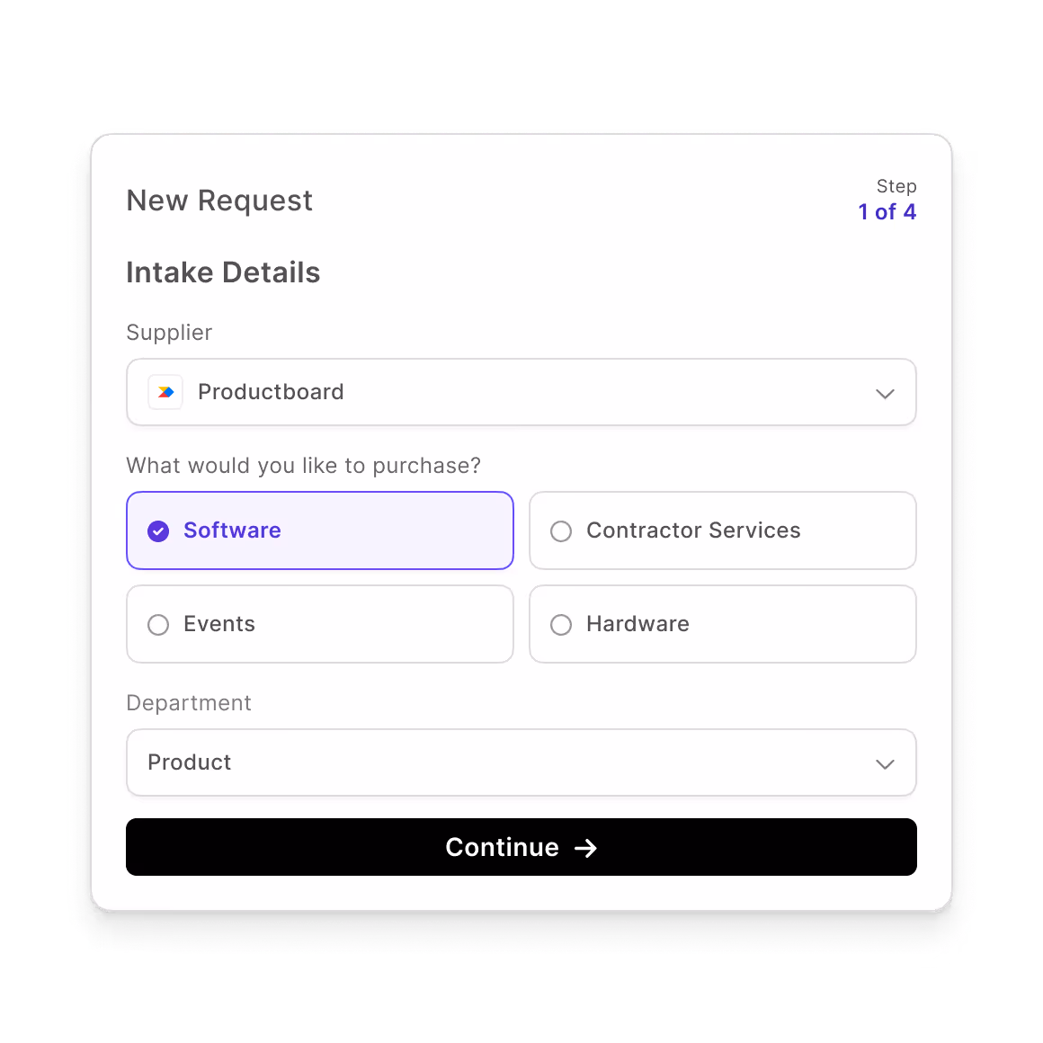 Streamline your procurement process with one URL that guides every employee through purchase requests. Intelligent forms capture relevant info upfront to ensure compliance and efficiency with every request.
