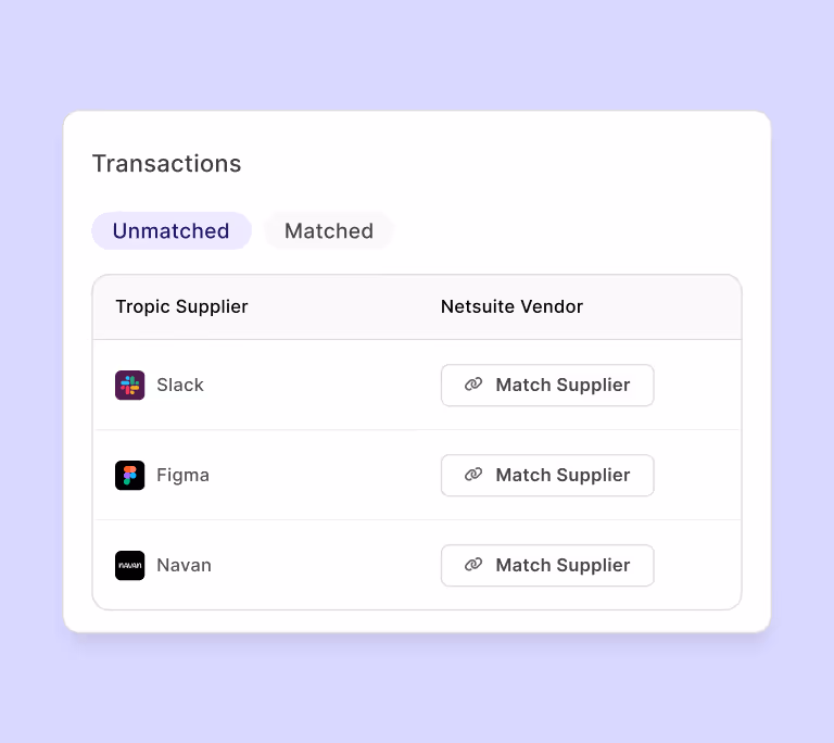 Improving supplier management starts with consolidating fragmented systems into one unified platform. Replace spreadsheets and scattered contract files with a centralized repository where all supplier agreements live with automated renewal tracking. Implement intelligent intake and approval workflows that make compliant purchasing easy while preventing unauthorized vendor relationships. Connect your ERP for real-time spend reconciliation and variance analysis that catches discrepancies immediately. Build comprehensive supplier profiles that bring together contracts, transactions, usage data, and performance metrics in one view. Enable continuous monitoring through automated reports that surface optimization opportunities without manual effort. Tropic improves supplier management by combining all these capabilities in one intuitive platform where every supplier relationship is visible, every contract is tracked, and every cost-saving opportunity is identified automatically.